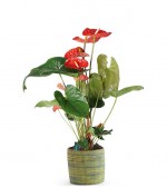 Kırmızı Antoryum çiçeğinin kökeni Kolombiya’dır. Parlak yaprakları ile göz alıcı bir görünüme sahiptir; bu nedenle de bulunduğu tüm ortamlara dekoratif bir hava katar. Antoryum çiçeği iyi şansı ve bolluğu sembolize eder.