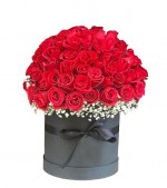 Ürün 51 adet kırmızı gül ile hazırlanmıştır. Tahmini ürün boyutu: 40 cm'dir.