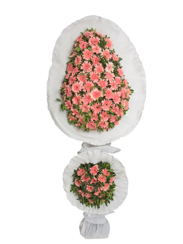 Pembe Gerberalar İki Katlı Çelenk