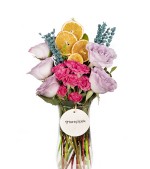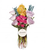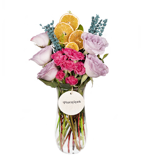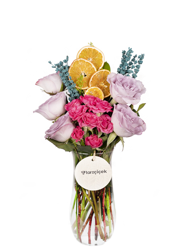 Vazo içerisinde 6 adet lila gül ve pembe çardak güllerden oluşan harika aranjmanımız Pretty The One en tarz çiçeklerin adresi