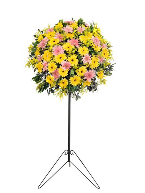 Tek Katlı Pembe Gerbera Çelenk